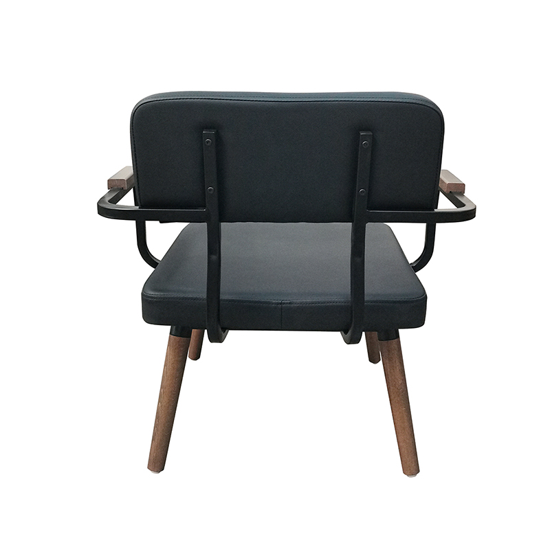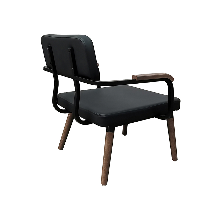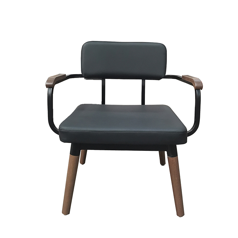 Strength steel frame with arms Solid wood tapered legs Wood stain finishUpholstery seat and back TB117 high density foam Plastic glides