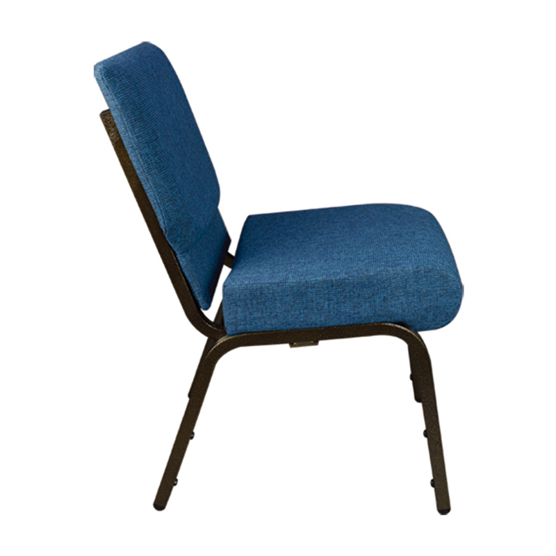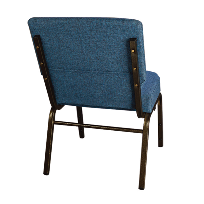 . Multipurpose church chair . Steel tube frame 25*25*1.5mm . Powder coating finish . CA117 Fire Retardant Foam . T-NUTS to connect seats and backs to chair frame . Book pouch on Back . Steel Book Rack . Ganging Bracket . Floor Protector Plastic Glides . 300kgs Weight Capacity . Available in COM