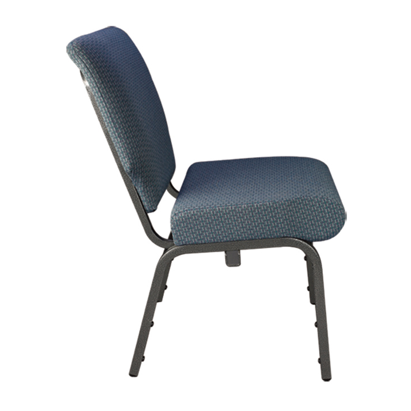 . Multipurpose church chair . Steel tube frame 25*25*1.5mm . Powder coating finish . CA117 Fire Retardant Foam . T-NUTS to connect seats and backs to chair frame . Book pouch on Back . Steel Book Rack . Ganging Bracket . Floor Protector Plastic Glides . 300kgs Weight Capacity . Available in COM