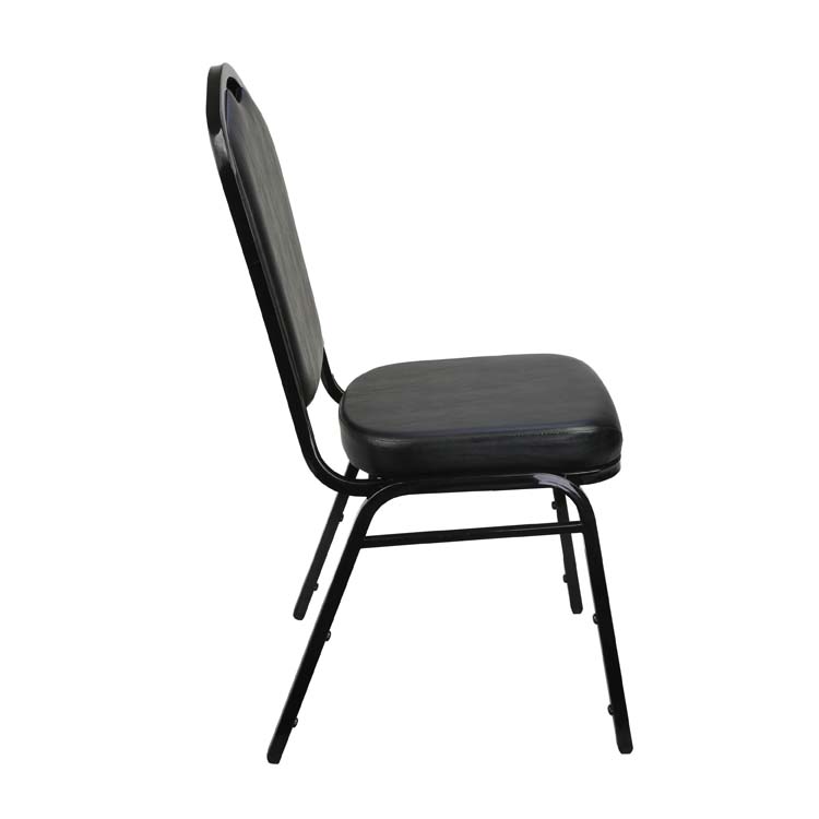 . 20 guage 20*20mm steel square tube . Powder coat finish . Vinyl or fabric cushion filled with TB117 high density foam . Stacks 5 high . Designed for Commercial Use; Suitable for Home Use . 600 lb. Weight Capacity . Available in COM