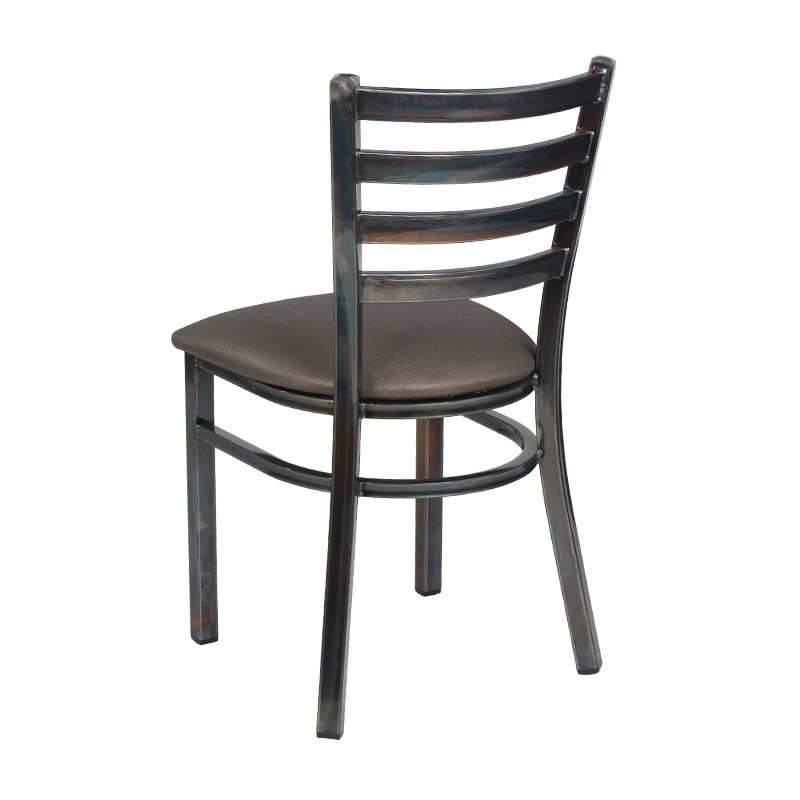 . Steel tube frame 30*30MM . Powder coating finish . Vinyl cushion filled with CA117 fire-retardant foam . Classical Ladder-style back . Floor Protector Plastic Glides . Designed for Commercial Use; Suitable for Home Use . 600 lb. Weight Capacity . Available in COM