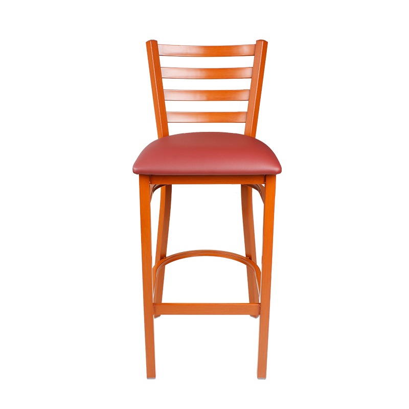 . Steel tube frame 30*30MM . Powder coating finish . Plywood seat , beech wood veneer . Classical Ladder-style back . Floor Protector Plastic Glides . Two Curved Support Bars . Designed for Commercial Use; Suitable for Home Use . 600 lb. Weight Capacity . Available in COM