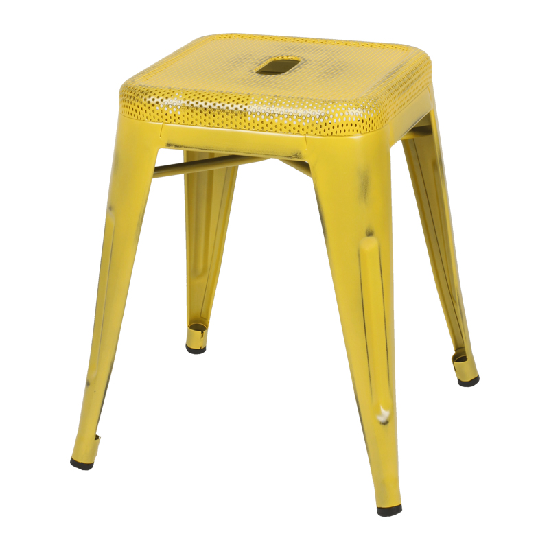 . Sturdy metal frame . Distressed Yellow finished . ISO9001 & SGS Product Certified . Cross Brace under seat provides extra stability . Stacked to maximize storage space. . Floor Protector Plastic Glides . Designed for Commercial Use; Suitable for Home Use . 600 lb. Weight Capacity . Available in COM . Option for outdoor use
