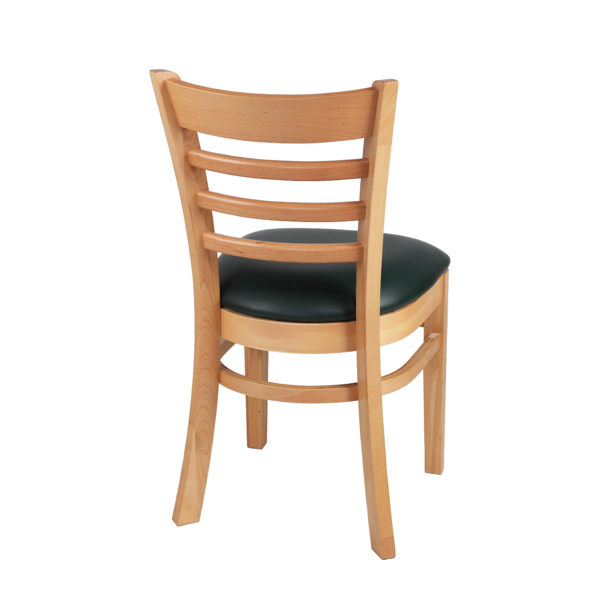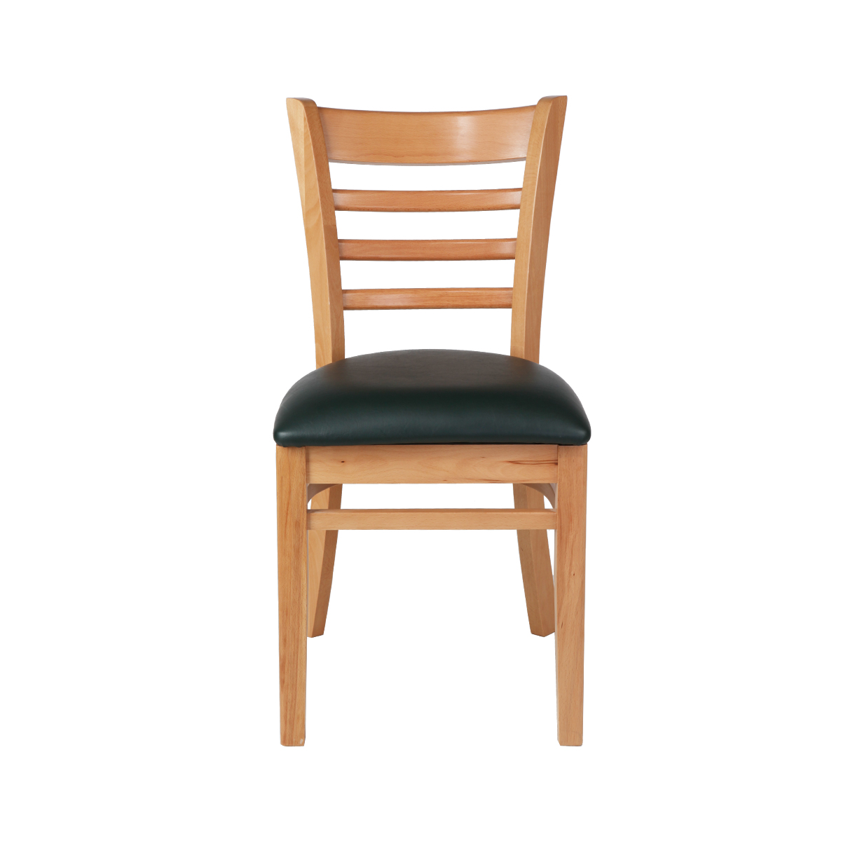 . Solid European Beech Hardwood Construction. NC painting (PU painting avaiable as per request). Vinyl cushion filled with CA117 fire-retardant foam. Ladder-style wood back. Mortise and tenon joints structure. Floor Protector Plastic Glides. Designed for Commercial Use; Suitable for Home Use. 600 lb. Weight Capacity. Available in COM