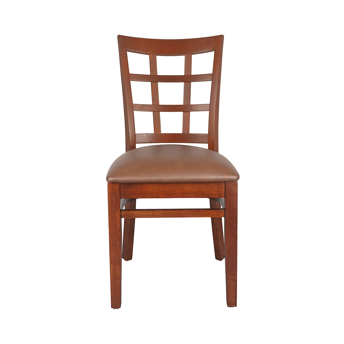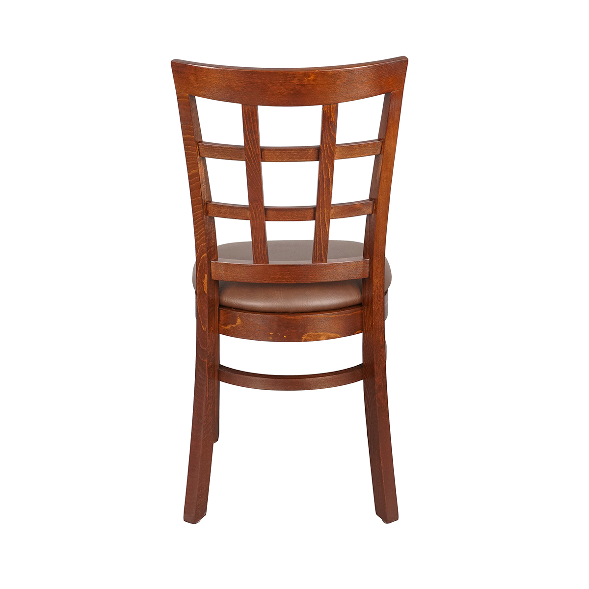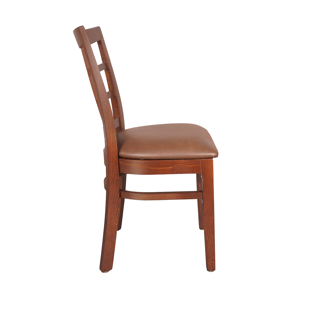 . Solid European Beech Hardwood Construction . NC painting (PU painting avaiable as per request) . Vinyl cushion filled with CA117 fire-retardant foam . Window-style wood back . Mortise and tenon joints structure . Floor Protector Plastic Glides . Designed for Commercial Use; Suitable for Home Use . 600 lb. Weight Capacity . Available in COM