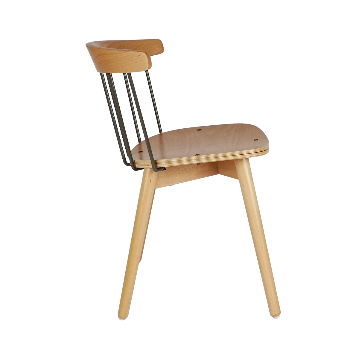 Strength steel frame Tapered solid wood legs Powder coatingPlywood seat and solid wood backPlastic glides