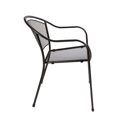 . Gamba della sedia 19 mm round. E - Finitura di rivestimento di rivestimento e polvere (Outdoor usato). Sedile e schiena: maglia di metallo. Design integrato di schiena e bracciolo. Piani di plastica della protezione del pavimento. Schiena curva. Bracciolo comodo. Leggero e impilabile. Progettato per uso commerciale; uso esterno. Capacità di peso di 600 libbre. Disponibile in com